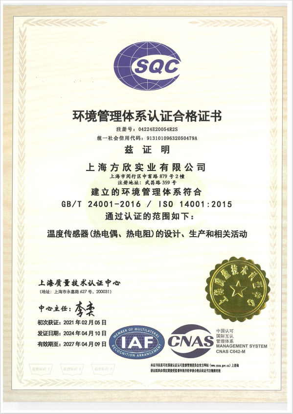 環(huán)境管理體系證書